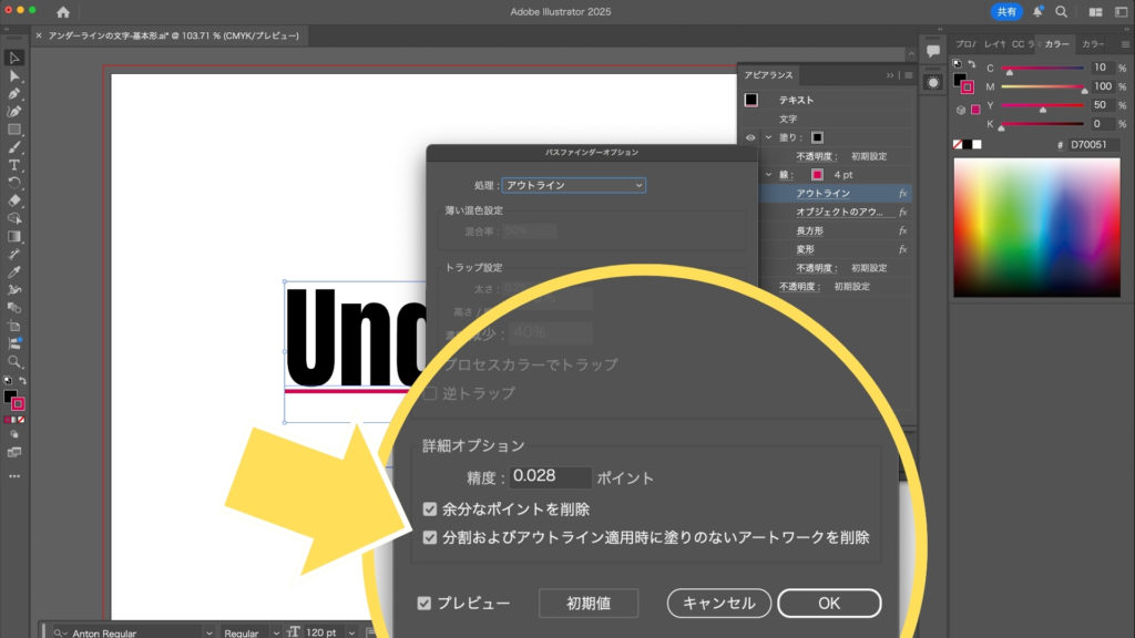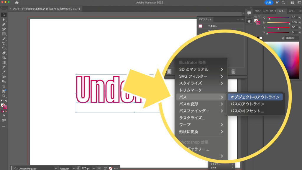 アンダーラインの文字を作成する方法【Illustrator】