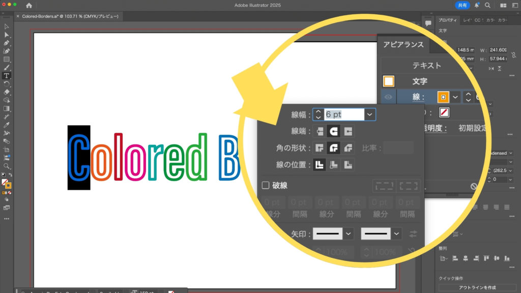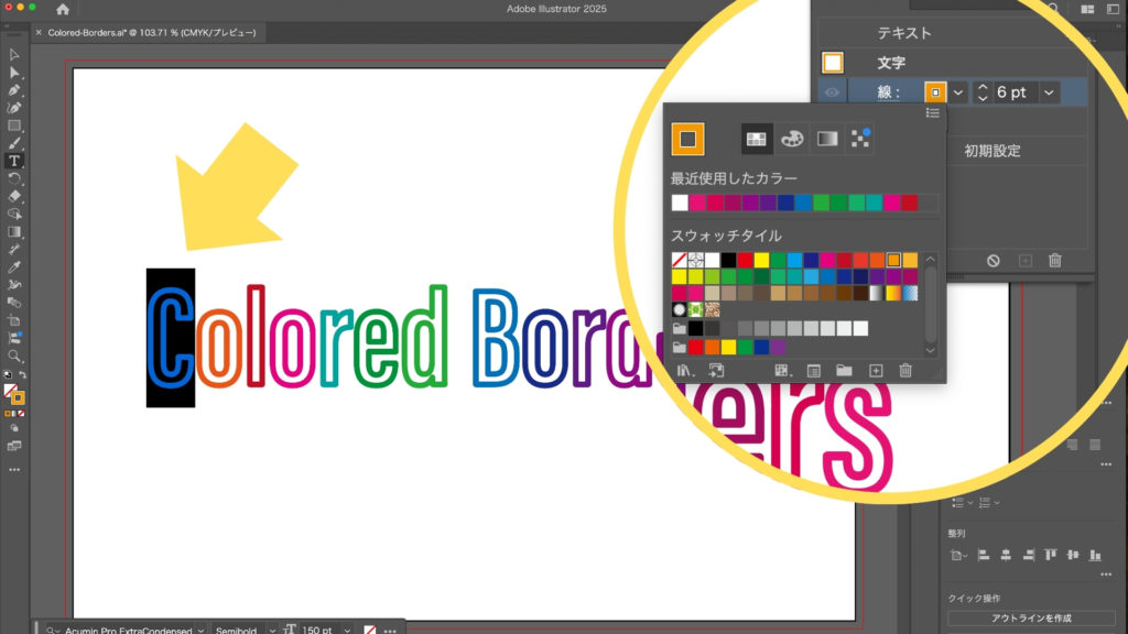 Illustratorでデザインをしていると、文字にカラフルなフチをつけて、より華やかで目を引くレイアウトにしたい場面がありますよね。この記事では、文字ごとに異なるカラーのフチをつける方法をご紹介します。