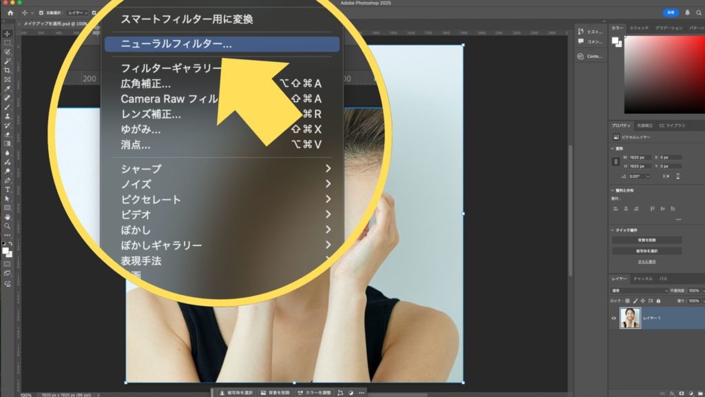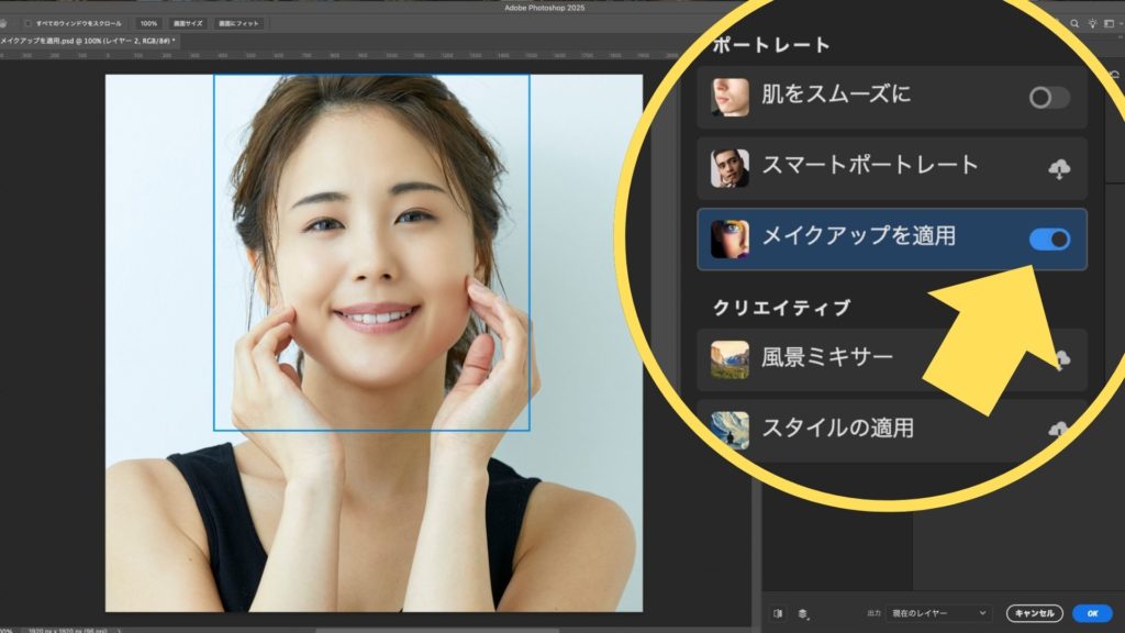 Photoshopのニューラルフィルターでメイクアップを簡単に適用する方法