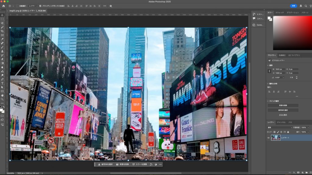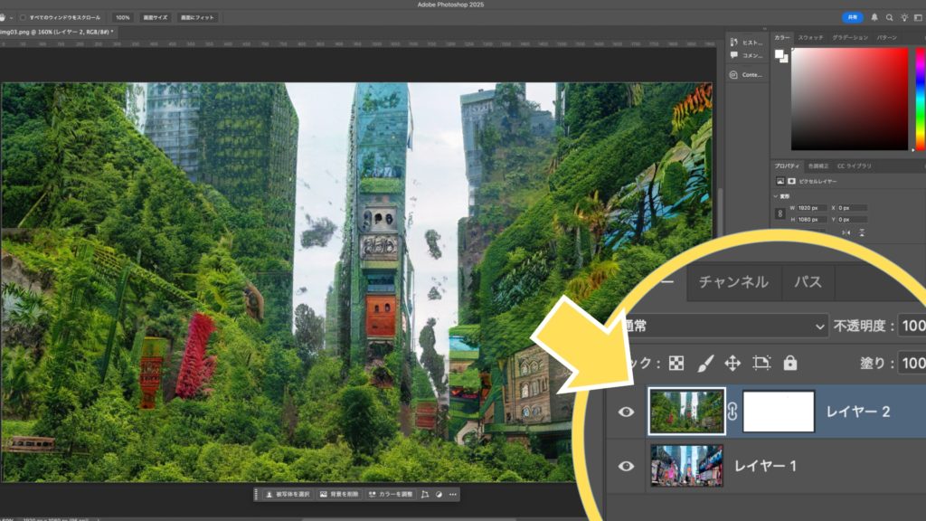 まずは、合成したい画像のレイヤーを選択します。