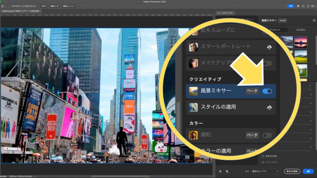 ② 「風景ミキサー」をオンにする