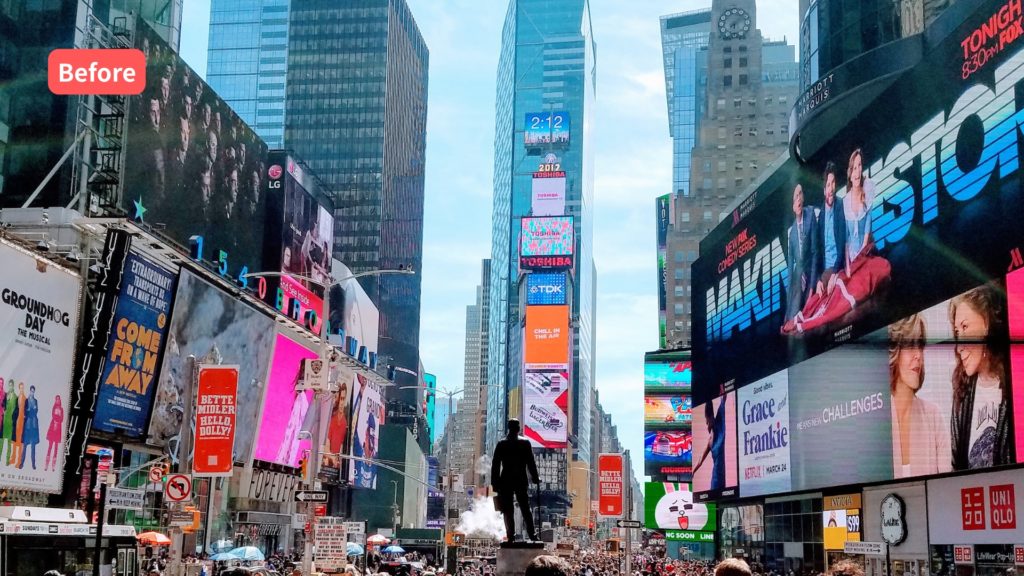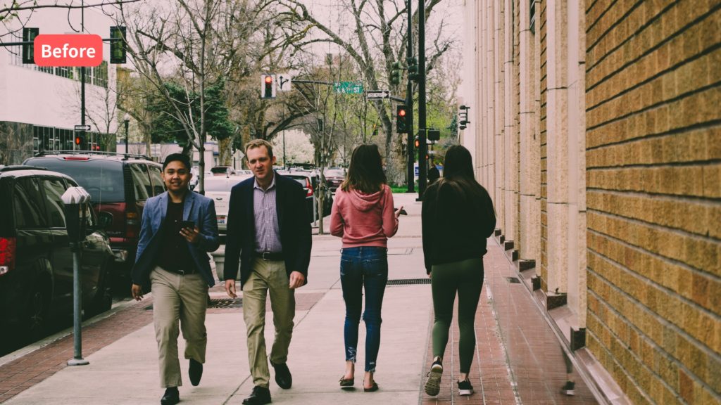 AIが被写体を認識し、背景のみを変更してくれるため、人物はそのままの状態で合成できます。
