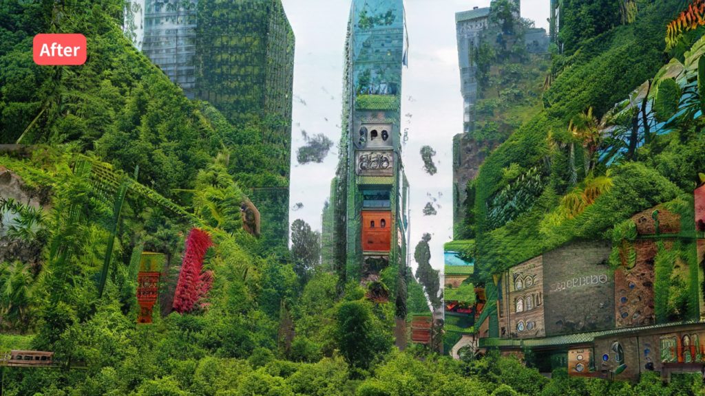 今回はプリセットから「ジャングル」を選択してみましょう。AIが処理を開始し、選択したレイヤーとジャングルの風景が自然に合成されます。