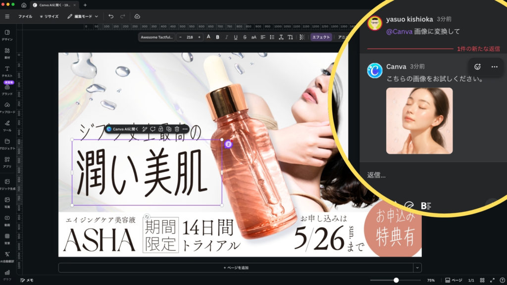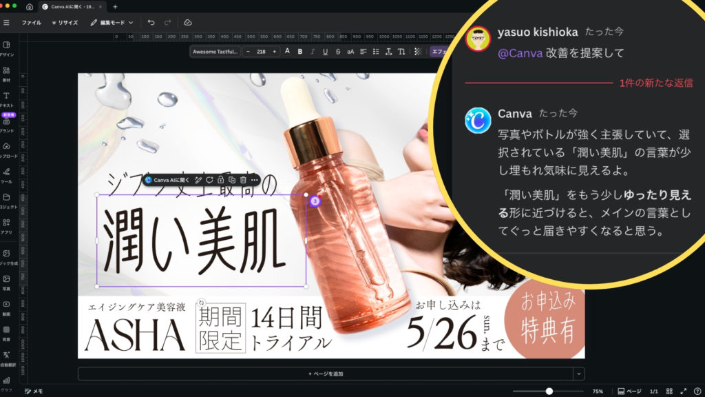 「Canva AIに聞く」機能を活用すれば、デザインのレベルアップはもちろん、制作にかかる時間も大幅に短縮されること間違いなしです!
