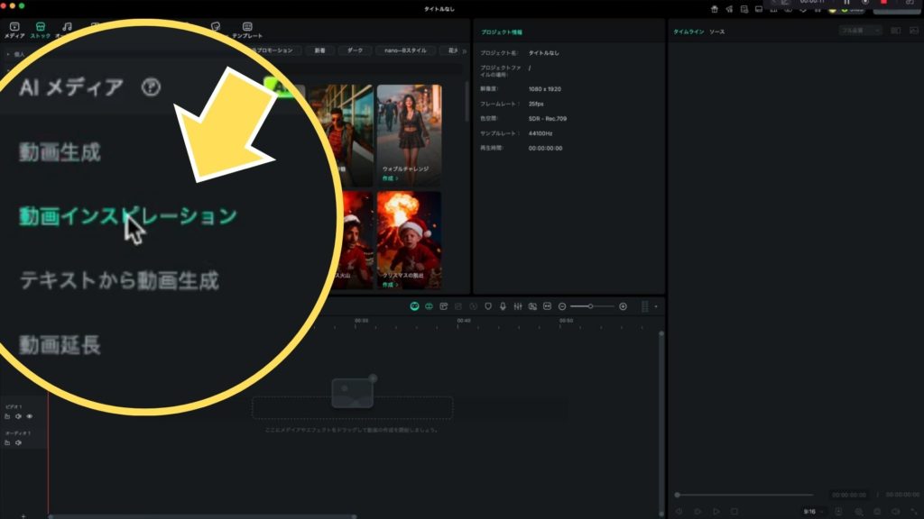 ●画面左のメニューから「動画インスピレーション」を選択します。