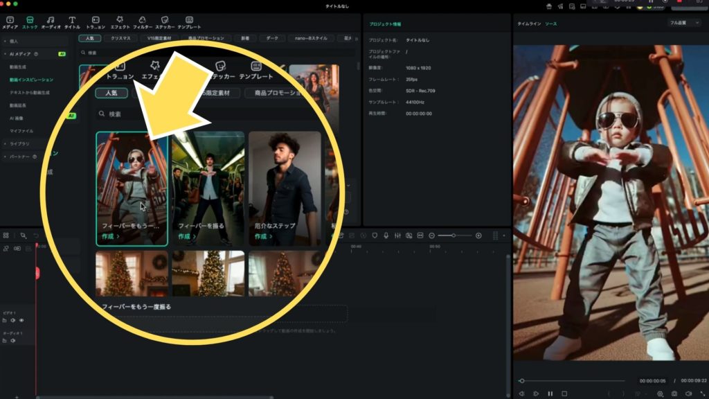 Filmoraには、今SNSでトレンドになっているAIエフェクトが豊富に用意されています。