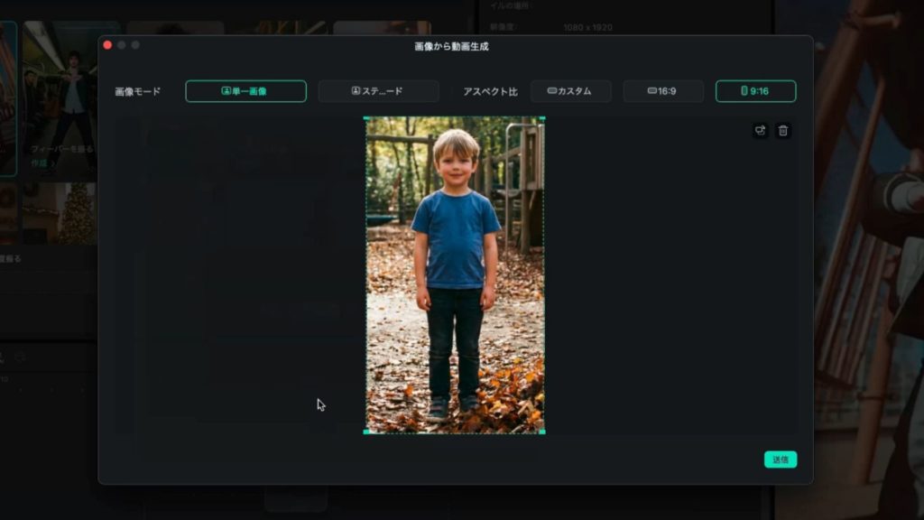 ●トリミングなどの調整画面が表示されます。範囲を指定し、問題なければそのまま「送信」を選択します。